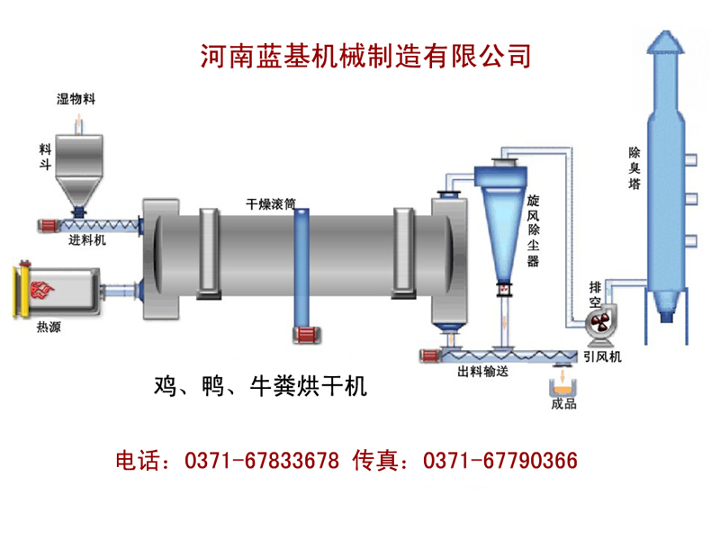 <1> 生產(chǎn)工藝:該機(jī)將含水65%的鮮雞糞經(jīng)過高溫烘干、消毒滅菌、分解等工序烘干而成的